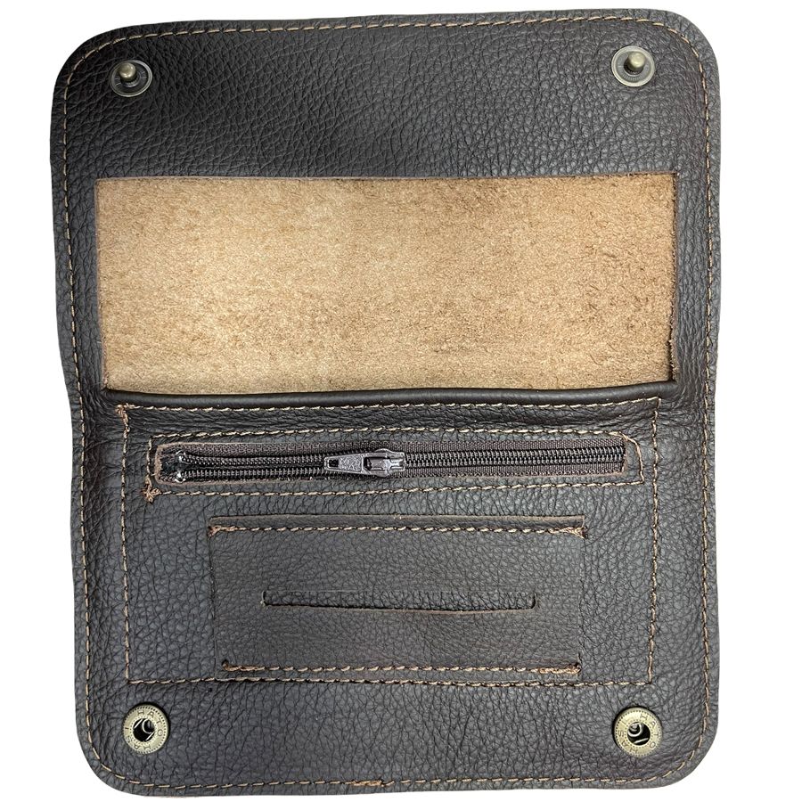 Υψηλής ποιότητας δέρμα, ανθεκτική για συχνή χρήση. Με δύο κουμπώματα για εύκολο κλείσιμο, ακόμα και όταν η καπνοθήκη είναι γεμάτη.