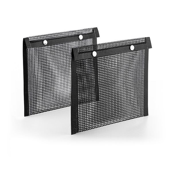 Ένα σετ από 2 τσάντες πλέγματος για μπάρμπεκιου ιδανικές για ψήσιμο λαχανικών σχάρα και άλλων μικρών τροφίμων χωρίς να κολλάνε, να πέφτουν ή να καίγονται. Είναι πολύ πρακτικές και εύχρηστες, απλά πρέπει να βάλετε τα τρόφιμα στις τσάντες και να τις τοποθετήσετε στη σχάρα μπάρμπεκιου (ποτέ απευθείας στις φλόγες). Το φαγητό μαγειρεύεται καλύτερα και με περισσότερη γεύση, καθώς ο καπνός περνά μέσα από το πλέγμα. Απλά, πρέπει να γυρίσετε τις τσάντες για να μαγειρέψετε τα φαγητά από την άλλη πλευρά. Μέσα στις τσάντες, τα τρόφιμα δεν πέφτουν κατά το μαγείρεμα και μόλις μαγειρευτούν, αφαιρούνται εύκολα χάρη στο αντικολλητικό υλικό. Επιπλέον, οι τσάντες καθαρίζονται εύκολα στο πλυντήριο πιάτων. Μια πιο υγιεινή και αποτελεσματική μέθοδος μαγειρέματος φαγητού στο μπάρμπεκιου.