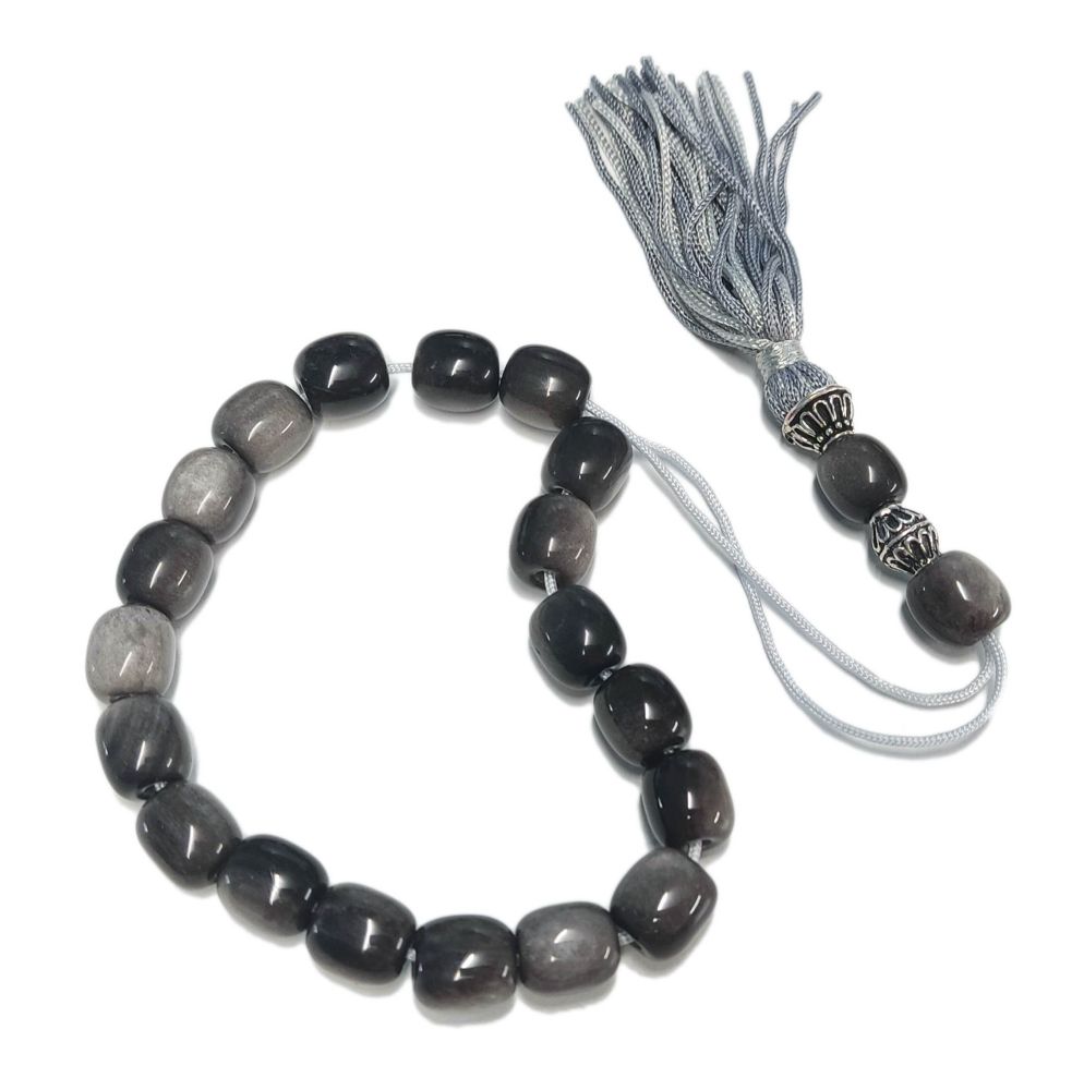 Κομπολόι Οψιδιανός Γκρι 12 Mm Με Φούντα