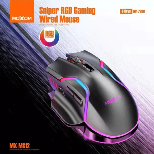 Moxom MX-MS12 RGB Wired Gaming Mouse 7200 DPI - Color: Black