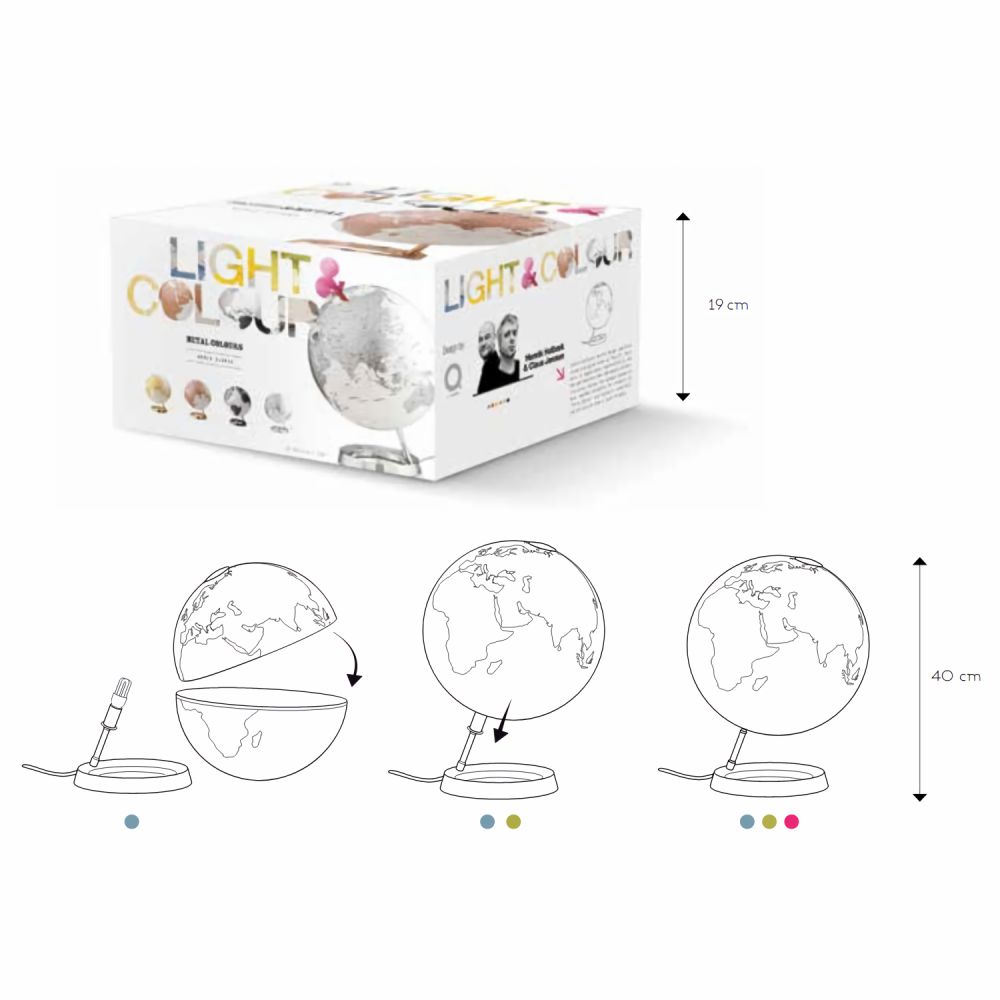 Οι Light & Color είναι μια νέα σειρά υδρογείων σφαιρών που δημιουργήθηκε από την Atmosphere, συνδυάζοντας τον εκλεπτυσμένο σχεδιασμό και την σύνθεση των γεωγραφικών πληροφοριών με ακρίβεια. Χάρη στον λαμπτήρα led δίνει έντονο φωτισμό και ταυτόχρονα έχουμε εξοικονόμηση ενέργειας. Απαιτεί κάποια συναρμολογήση.